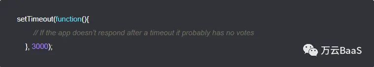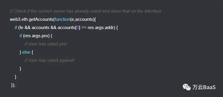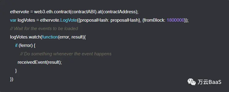 一些附加说明:当没有事件时,什么也不会被返回,并且投票也不会被计算,所以你应该对依赖于区块链上事件的所有函数增加一个超时函数。