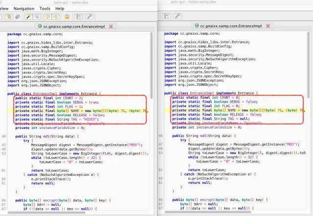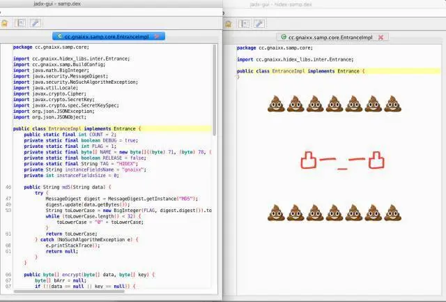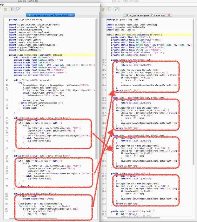 混淆加 密主要是为了隐藏 dex 文件中关键的代码,力度从轻到重包括:静态变量的隐藏、函数的重复定义、函数的隐藏、以及整个类的隐藏。混淆后的 dex 文件依旧可以通过 dex2jar jade 等工具的反编译成 Java 源码,但是里面关键的代码已经看不到了。