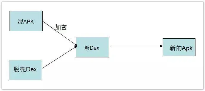 拿 到需要加密的Apk和自己的壳程序Apk,然后用加密算法对源Apk进行加密;再与壳Apk的Dex进行合并得到新的Dex文件;然后替换原壳程序中的 dex文件即可,得到新的Apk。那么这个新的Apk我们也叫作脱壳程序Apk,他已经不是一个完整意义上的Apk程序了,他的主要工作是:负责解密源 Apk,然后加载Apk,让其正常运行起来。