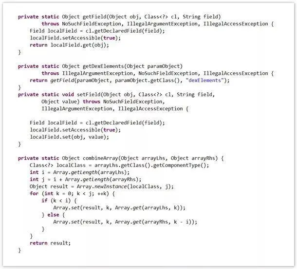 当然DexClassLoader也是一样的,可以将DexClassLoader中的dexElements和PathClassLoader中的dexElements进行合并,然后在设置给PathClassLoader中。