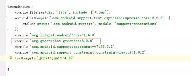 3)引用GreenDAO的工程jar包。 compile 'org.greenrobot:greendao:3.2.0'