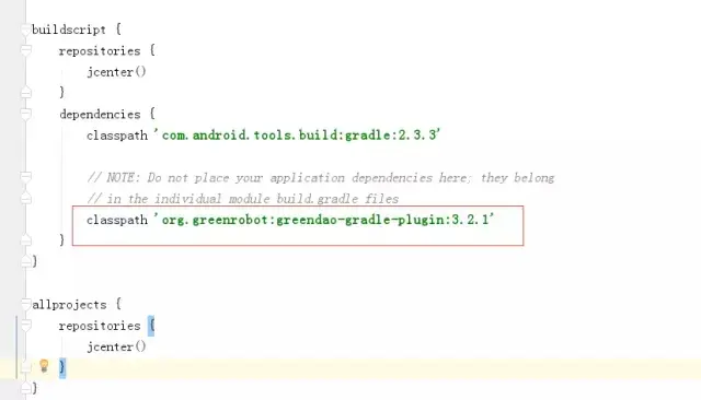 classpath 'org.greenrobot:greendao-gradle-plugin:3.2.1'