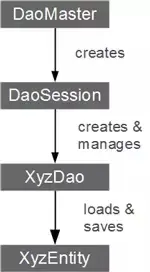 XyzDAO:数据访问对象(DAO)持续存在并查询实体。 对于每个实体,GreenDAO生成一个DAO。 它比DaoSession有更多的持久化方法,例如:count,loadAll和insertInTx。