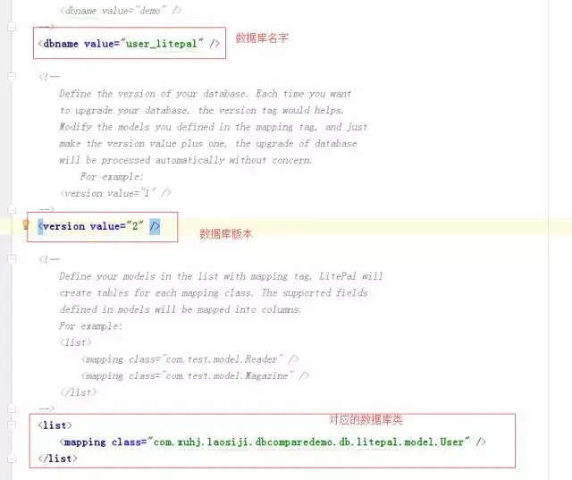 4)声明LitePalApplication。 android:name="org.litepal.LitePalApplication"