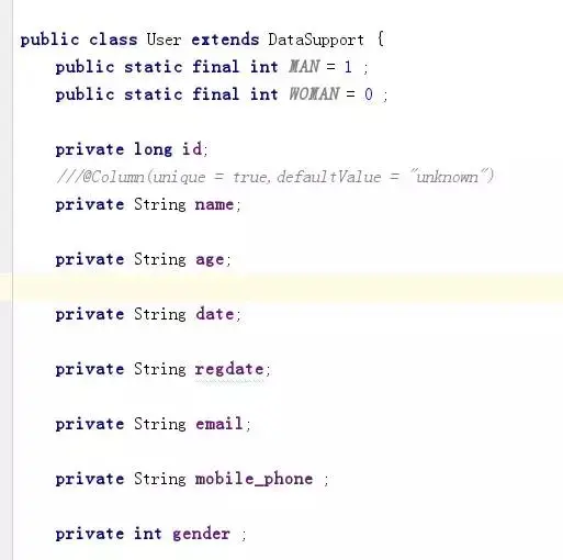 5)创建数据库映射的实体类。其中,@Entity 、@Id、@Property 等都是GreenDAO特有的元注解,可以通过标注JavaBean来告诉GreenDAO这是个数据库表,以及表对应的字段名。使用注解的方式来定义实 体类,通过gradle插件生成相应的代码,十分方便 。