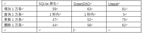 在魅族metal手机上的测试结果:执行效率 SQLite原生 > GreenDAO > Litepal