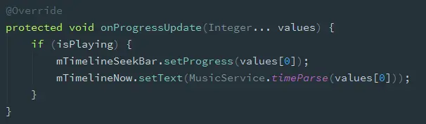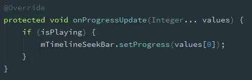 网上找啊找,关于AsyncTask的范例全都写得一模一样,只有更新seekbar等一个UI的。思考了一夜,第二天…………
