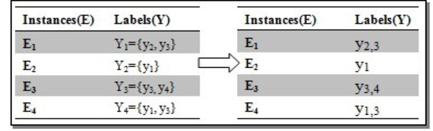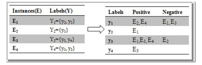 上面图中的意思是我们可以将训练数据多次使用,叫做cross-training,即我们将上图中 E1 既当做训练 y2 类别是正样本,也当做训练 y3 样本时候的正样本,感觉跟Binary Relevance (BR)算法是一个意思。