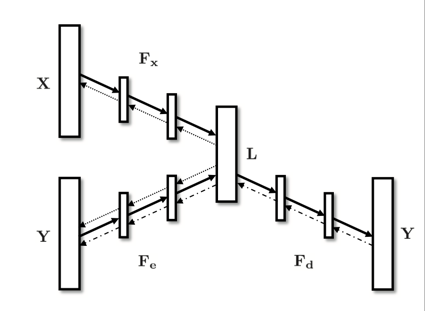 其中 Fx,Fe,Fd 分别是3个 dnn,分别代表 特征提取,标签encode,隐向量 decode,而 loss 函数有两部分组成:
