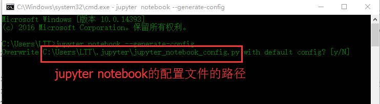 如果该配置文件已经存在,那么,会出现如下信息,从中可以见到配置文件存在的位置,注意,此时,输入N,不要overwrite