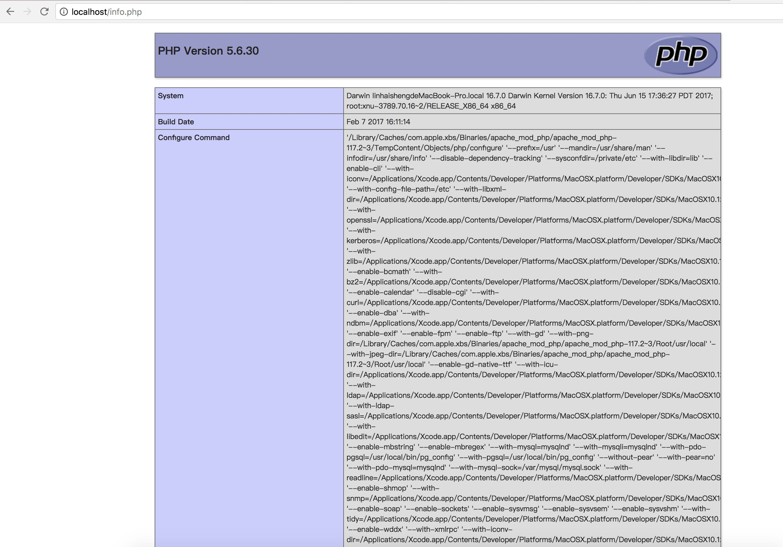 浏览器输入 http://localhost/info.php