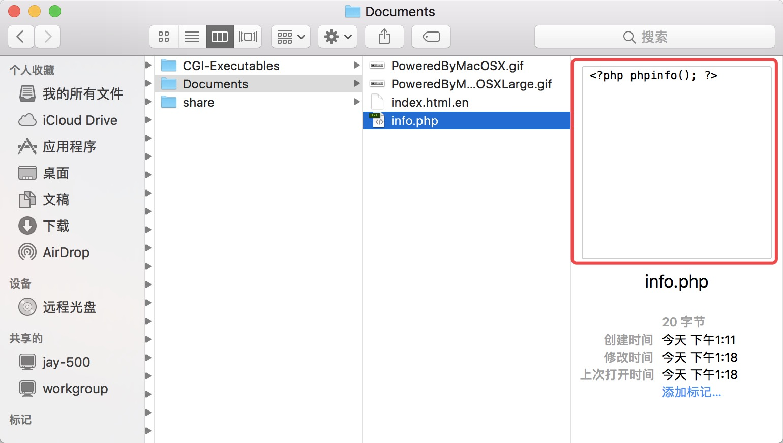 - 进入文件/Library/WebServer/Documents/