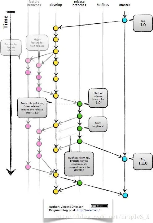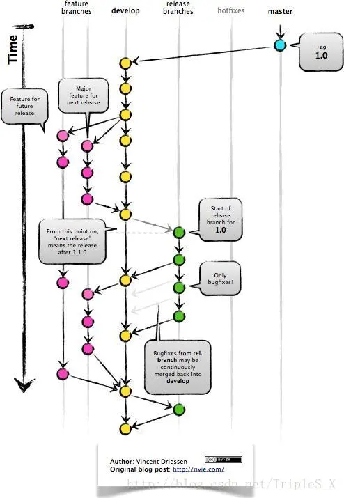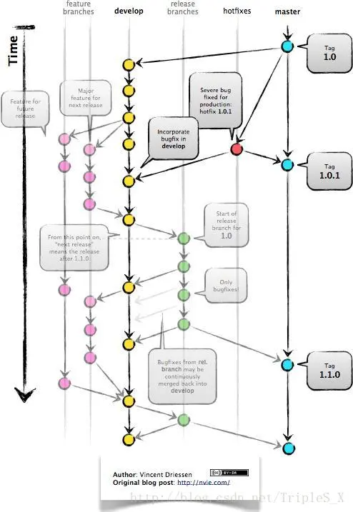 然后就是 GitFlow 最经典的几张流程图,一定要理解: