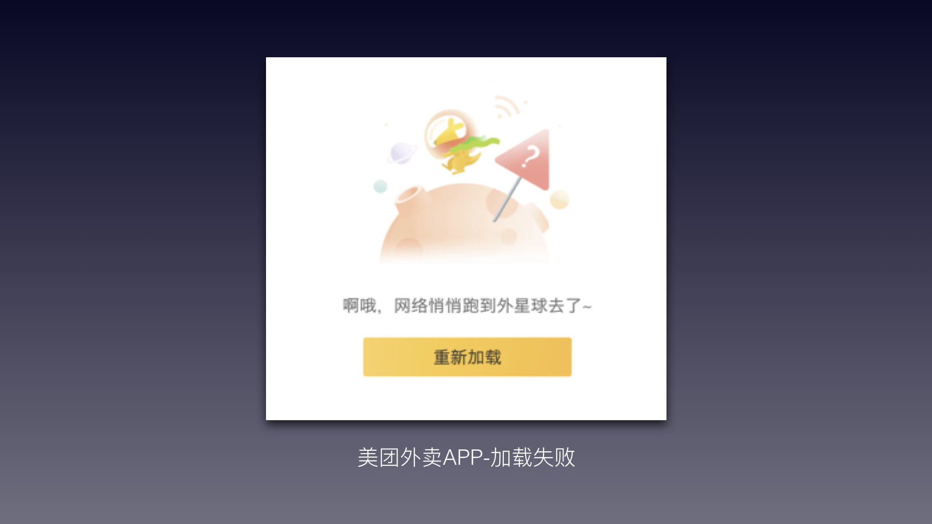 通过诙谐的图片和文案向用户解释加载失败的原因,获取用户理解,减轻焦虑感。