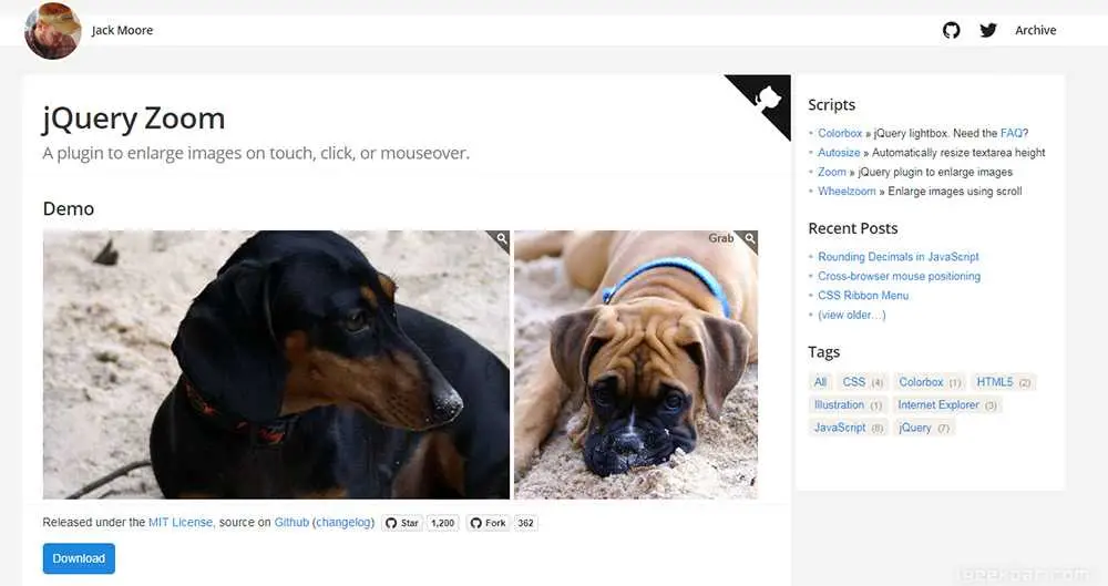 zoomple是非常特别的一个缩放插件, 拥有圆形和方形的放大样式, 支持悬浮缩放的功能,非常值得使用