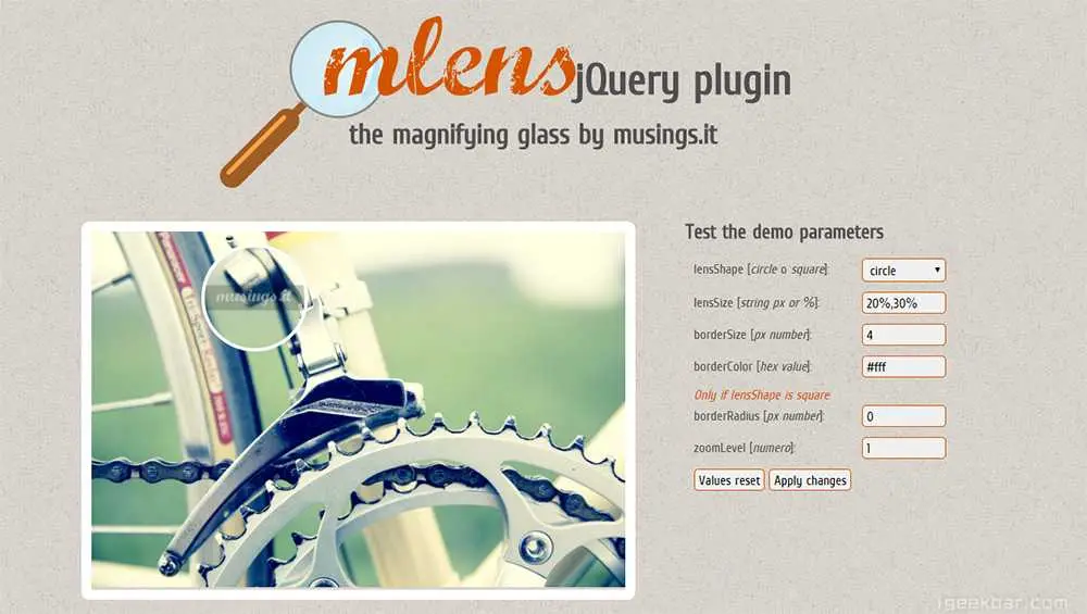 这是另外一个超酷的放大镜javascript, 也同样是悬浮展示效果,它是一个jQuery的插件,只需要一行代码就可以生成超炫的放大镜效果, 同样拥有很多不同的特性和选项