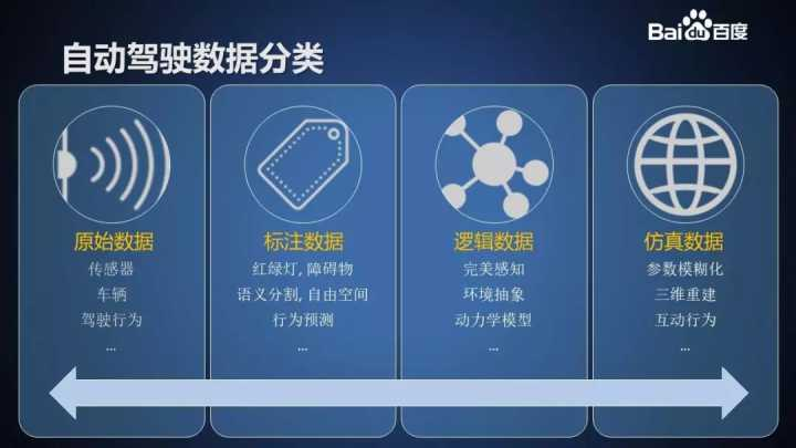 - 百度自动驾驶有非常强的能力来源于云端的。高精地图存储于云端,用以模拟驾驶的仿真服务也在云端,它加速了自动驾驶的研发效率。我们积累了大量的数据和对数据的理解。我们在云端也开放了数据平台,把数据加工的主线,在我们云端来体现出来。在云端还有我们的安全服务,保证软件的自动更新。