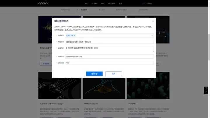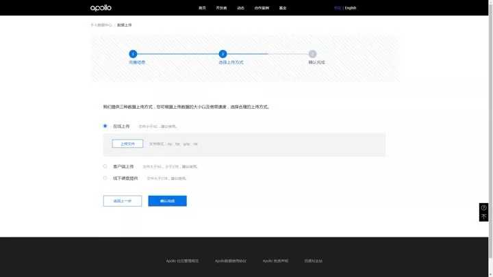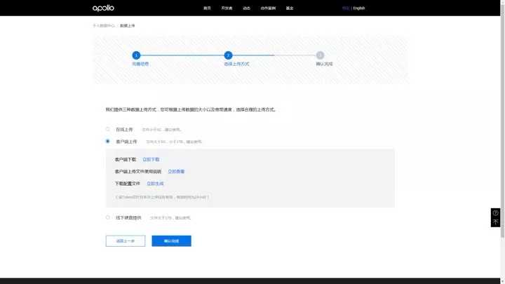 线下交盘方式在填写好数据信息后,会由 Apollo 商务人员直接对接。
