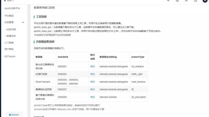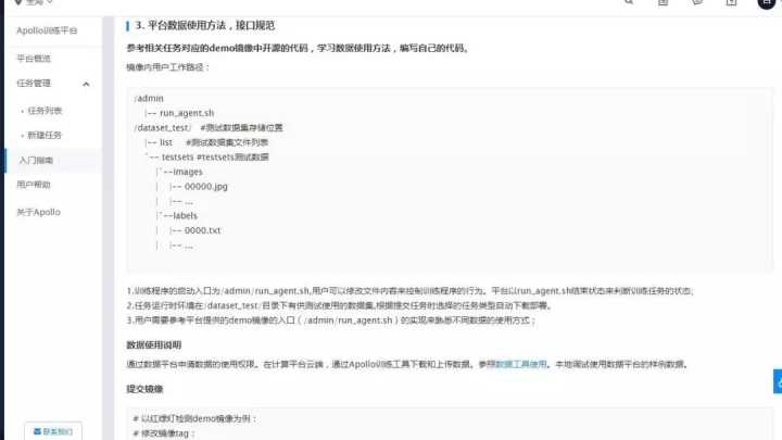 - 用户需要参考平台提供的 demo 镜像的入口(/admin/run_agent.sh)的实现来熟悉不同数据的使用方式;点击数据工具使用,可以了解开发者在计算平台云端,通过 Apollo 训练工具下载和上传数据的方式。