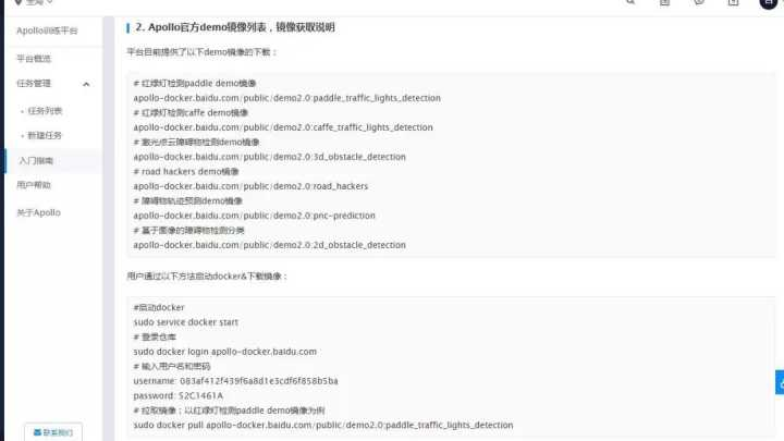 步骤二,Apollo 官方 demo 镜像列表,镜像获取说明。