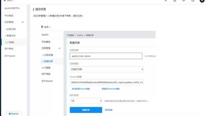 进入到训练平台的新建任务中,填写任务信息后提交任务。
