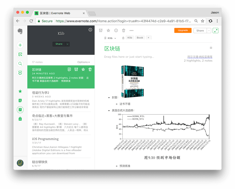 将笔记导入 Klib 后,便可以轻松地以 Markdown 格式复制笔记,以网页形式预览,或者导出至印象笔记。自己辛辛苦苦做的读书笔记,再也不用眼巴巴地看着,却无法导出、更无法使用了。