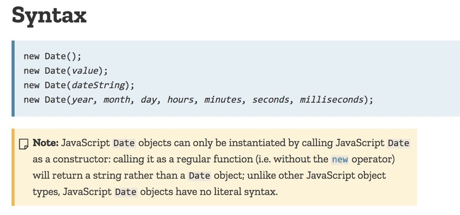 首先,看看MDN上的解释,上面有提到,JavaScript的日期对象只能通过JavaScript Date作为构造函数来实例化。