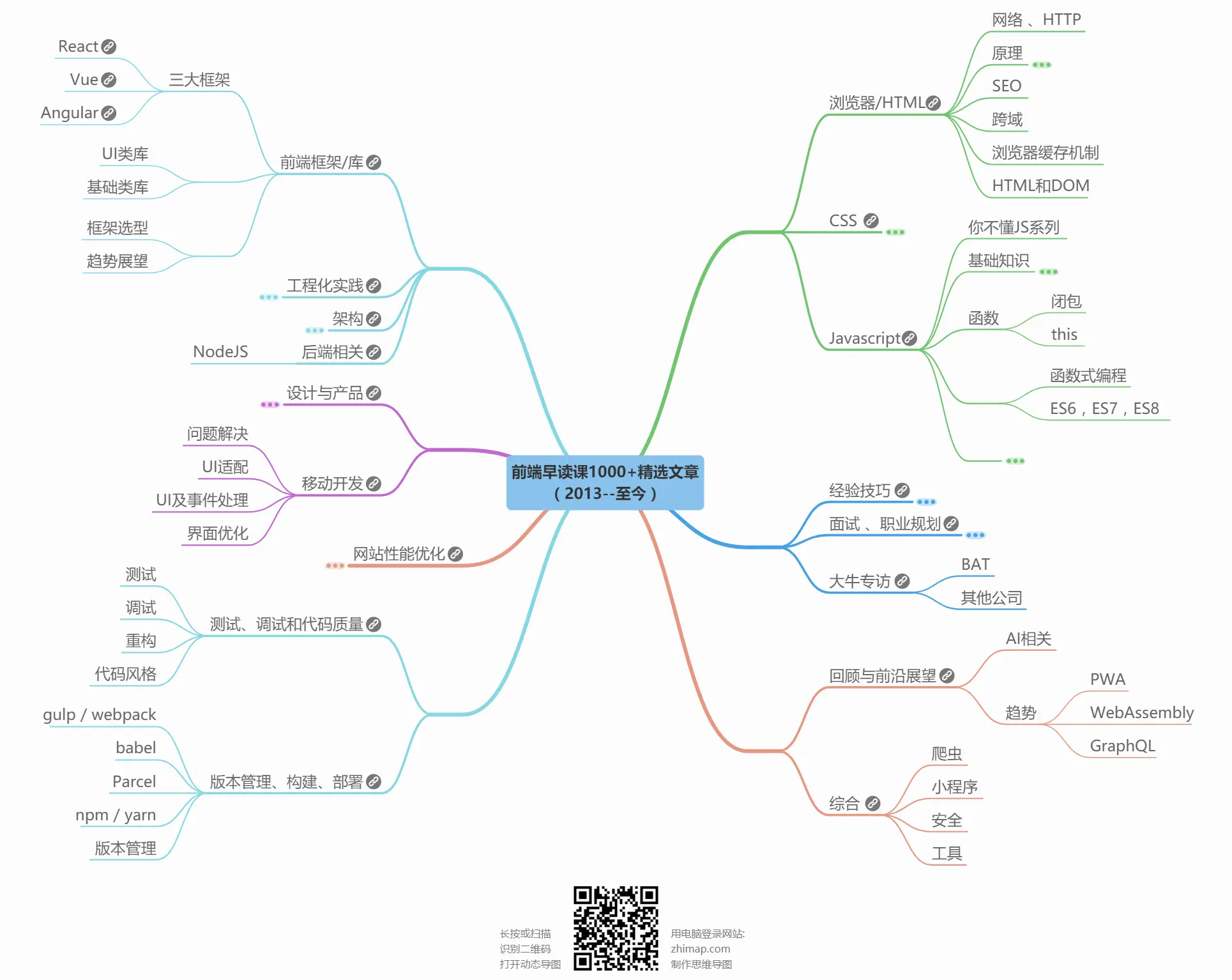以下是前几天帮前端早读课整理历史文章的思维导图: