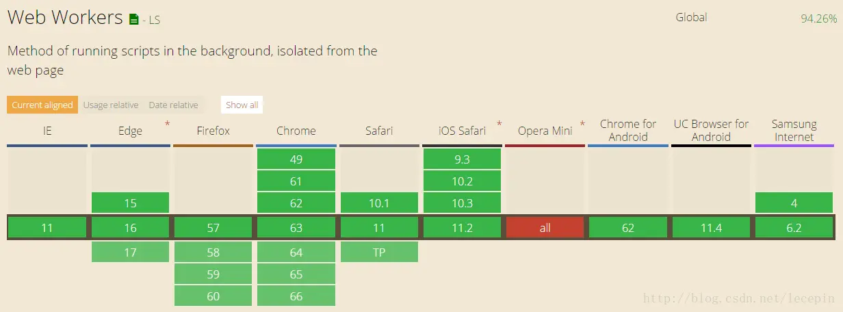 还是有必要列一下Worker目前在浏览器上的兼容性: