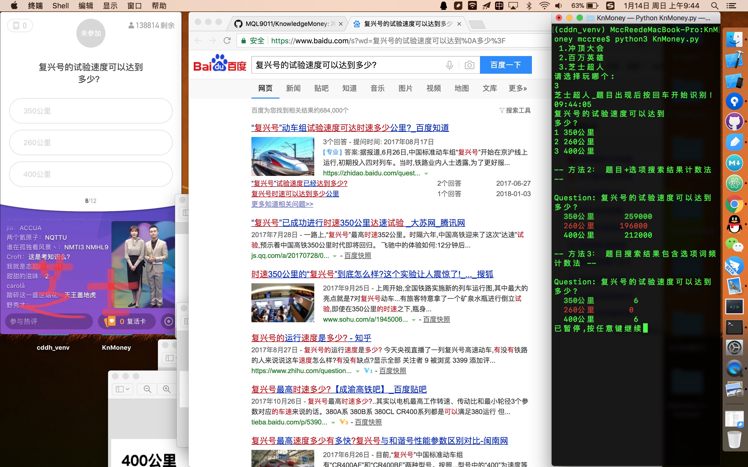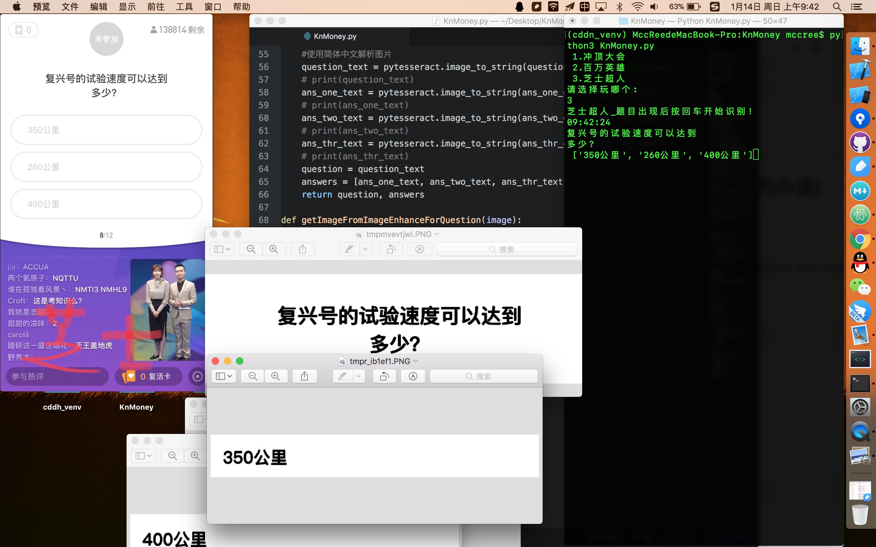这个搜题辅助其实可以用在任意答题类APP上,调整截图坐标是识别的关键