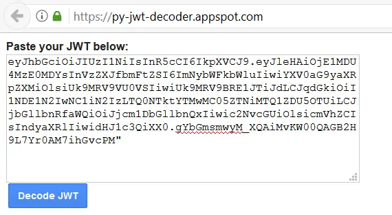 Click the ‘Decode JWT’ button and you should see the content similar to the following: