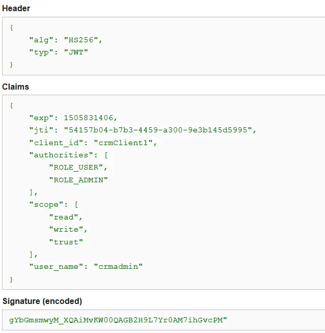 We learned from the beginning of this post that a JWT token consists of three parts (Header, Payload & Signature) separated by dots. Copy the access_token from the above response to any text editor and verify that the preceding is true.