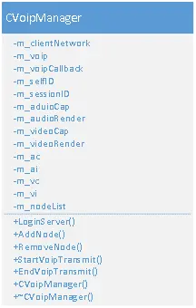 这个类封装了音视频操作与VoIP之间的交互,是整个Demo的核心部分。其类图如下所示: