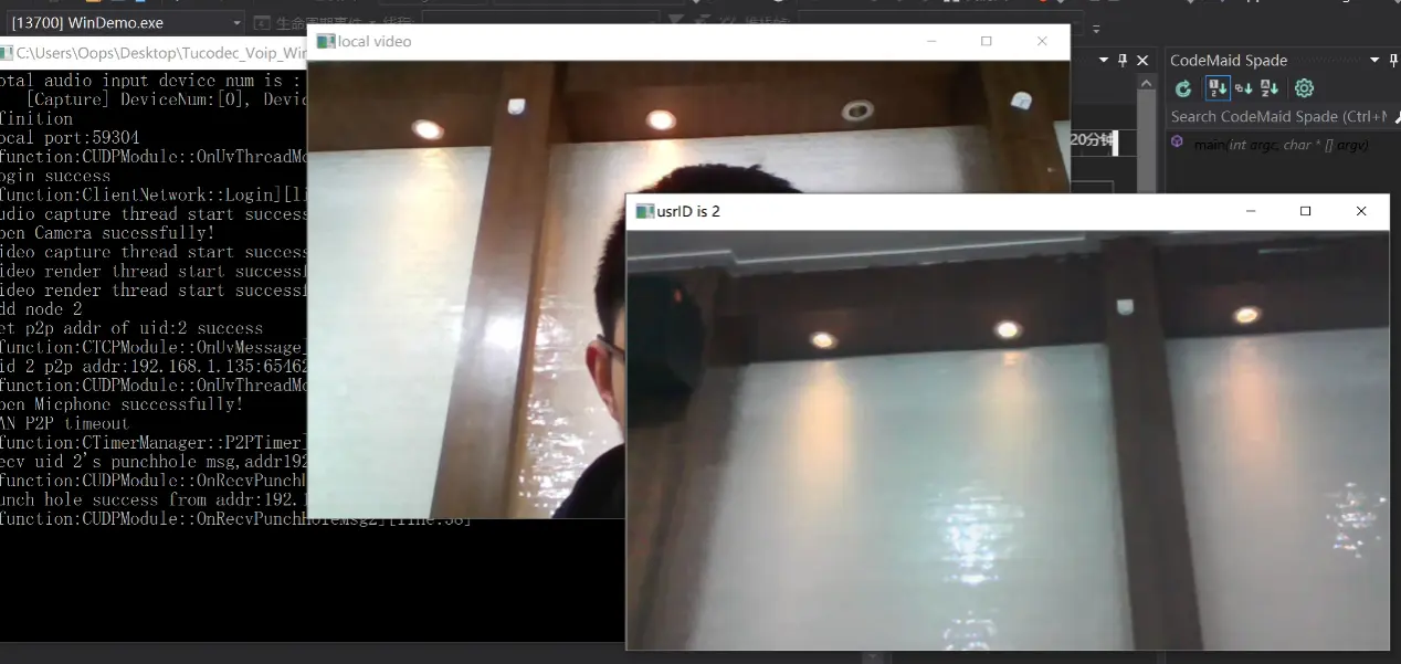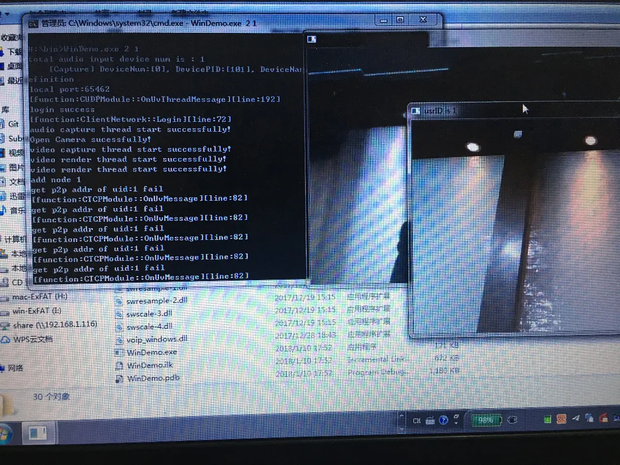 达到上图所示结果,就完成了Windows端的音视频通信。
