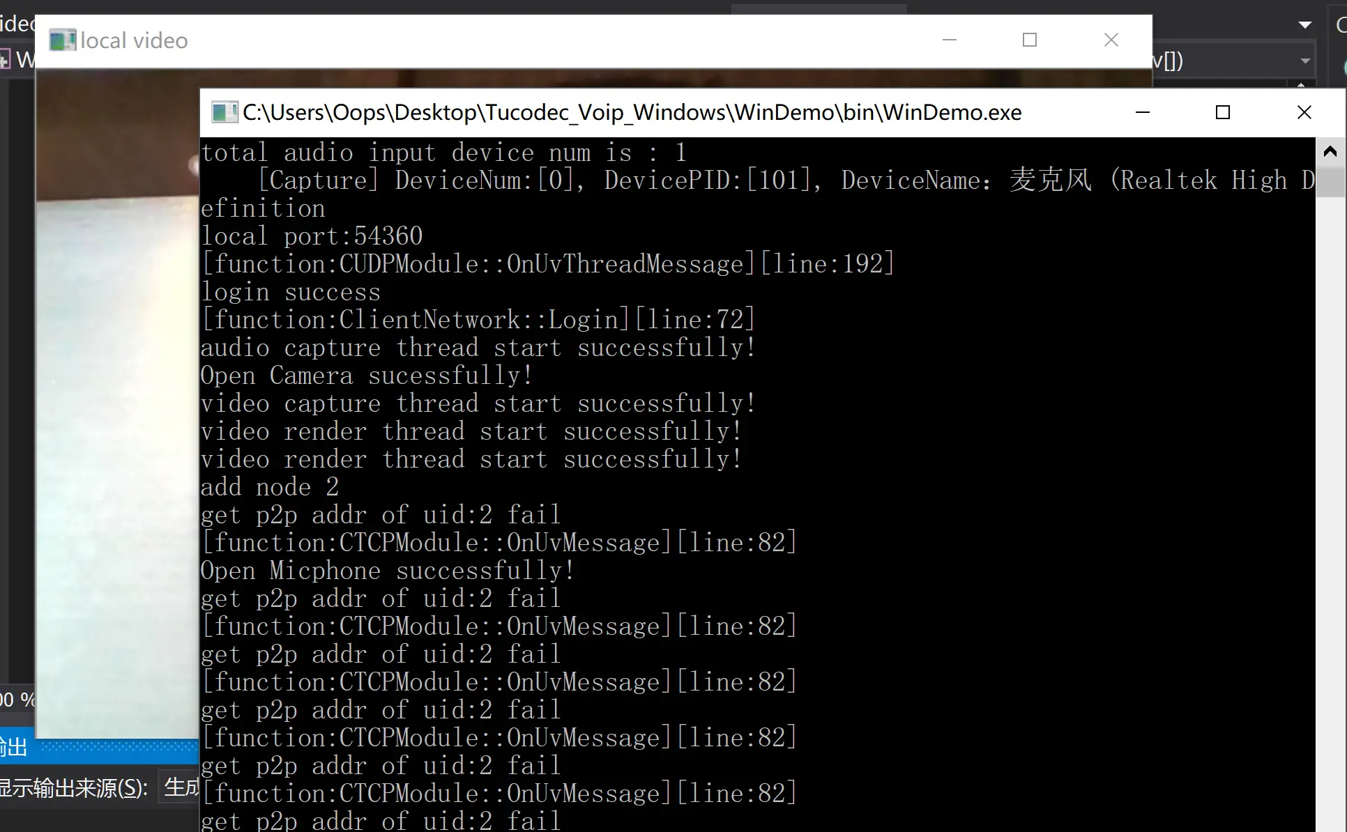 可以看到本地视频回路已被打开,控制台打印信息主要有: