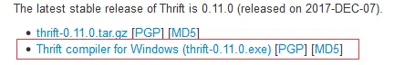 打开thrift官网下载地址:http://thrift.apache.org/download