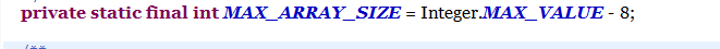 MAX_ARRAY_SIZE:最大容量,为了满足不同虚拟机,设计成Integer最大值-8。