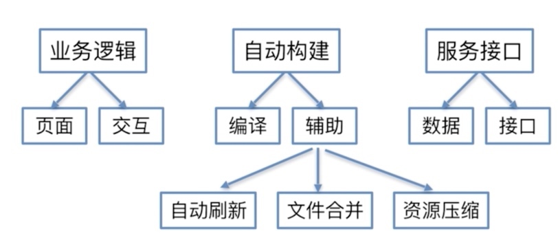 一个项目分为三部分:业务逻辑,自动构建系统,模拟数据和真实数据接口处理。