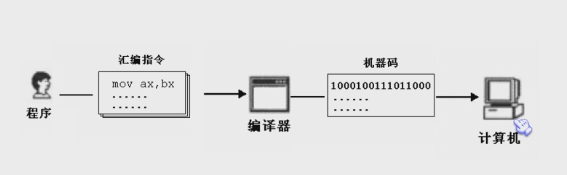 上面可以看到,01010000这个指令直接看机器码,我们很难看懂这条指令的意思,所以为了能更方便的书写代码,这个时候,汇编语言就产生了。