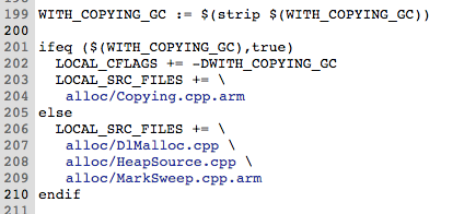 Dalvik虚拟机主要使用标记清除算法,也可以选择使用拷贝算法。这取决于编译时期: