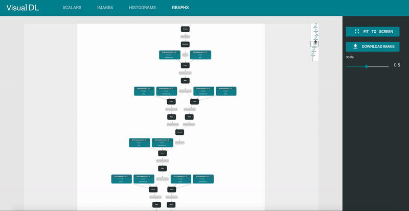 Graph is compatible with ONNX(Open Neural Network Exchange)[github.com/onnx/onnx], Cooperated with Python SDK, VisualDL can be compatible with most major DNN frameworks, including PaddlePaddle, PyTorch and MXNet.