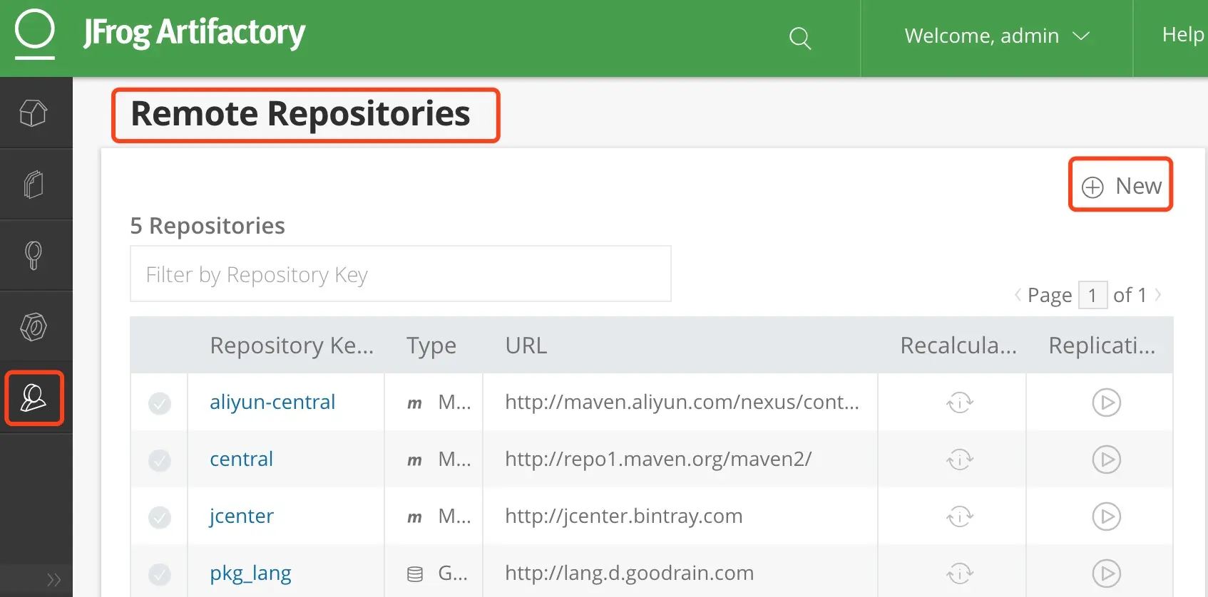 http://管理节点IP:8081并用管理员账号登录。 - Admin-Repositories 选择