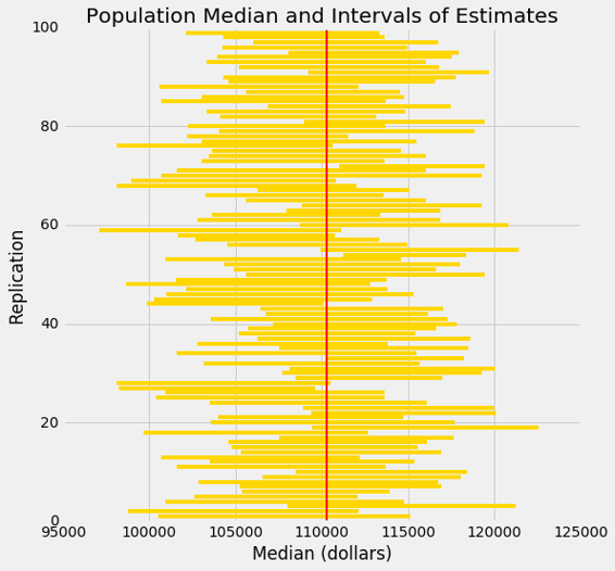 一旦她计算出了统计量的观察值,她就可以把它作为她的估计值,然后顺其自然。 但她是一名数据科学家。 她知道她的随机样本只是众多可能的随机样本之一,因此她的估计只是众多合理估算之一。