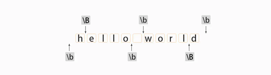 需要注意,\b 也包括 \w 与 ^ 之间的位置,以及 \w 与 $ 之间的位置。如图所示。