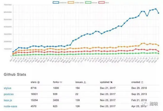 在过去的几年里,像SASS,Less和Stylus这样的CSS预处理器已经流行起来。PostCSS 于2014年推出,而在2017年真正火爆起来,成为目前最受欢迎的 CSS 预处理器。