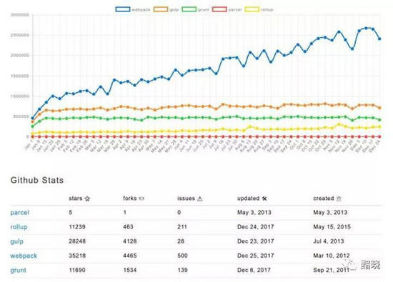 构建方案的持续发展,Webpack ,Rollup 以及后起之秀 Parcel 等在构建方案份额中扮演这一种合久必分、分久必合的轮回。