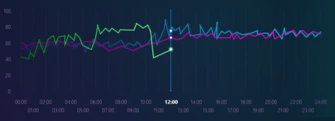 参数interval为3是因为实时数据是15分钟一个点,x轴标签一共有4*24=96个点,这里设置为3,是只取整点数据 自定义显示x轴标签主要用formatter参数