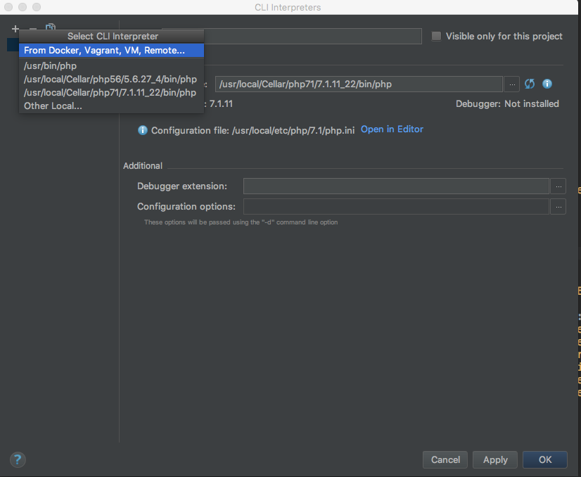 打开 Perferences -> Languages&Frameworks -> PHP,首先选择项目的php版本,之后在CLI Interpreter