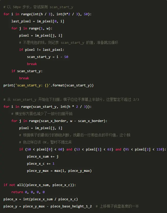 总结一下,目前这个方案基本没有太大问题,但如果跳一跳游戏把背景改成了非线性渐变,或随机飘落一些物体,或棋盘表面更加复杂,那这里的算法就基本不可用了。