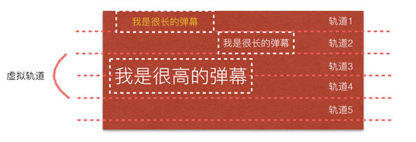 我们知道每个弹幕的播放时长是不同的,也就是用户看到的“滚动快慢”不一样。这就要求后面的弹幕不能碾压前面的弹幕,也不能影响相邻弹幕的位置,不然就会出现“覆盖”、“遮挡”等碰撞问题,解决这个问题要在弹幕位置计算这个时候考虑,位置计算不考虑速度就会出现碰撞的问题。同样,本文提出的“轨道控制”概念也是用来解决此问题的。